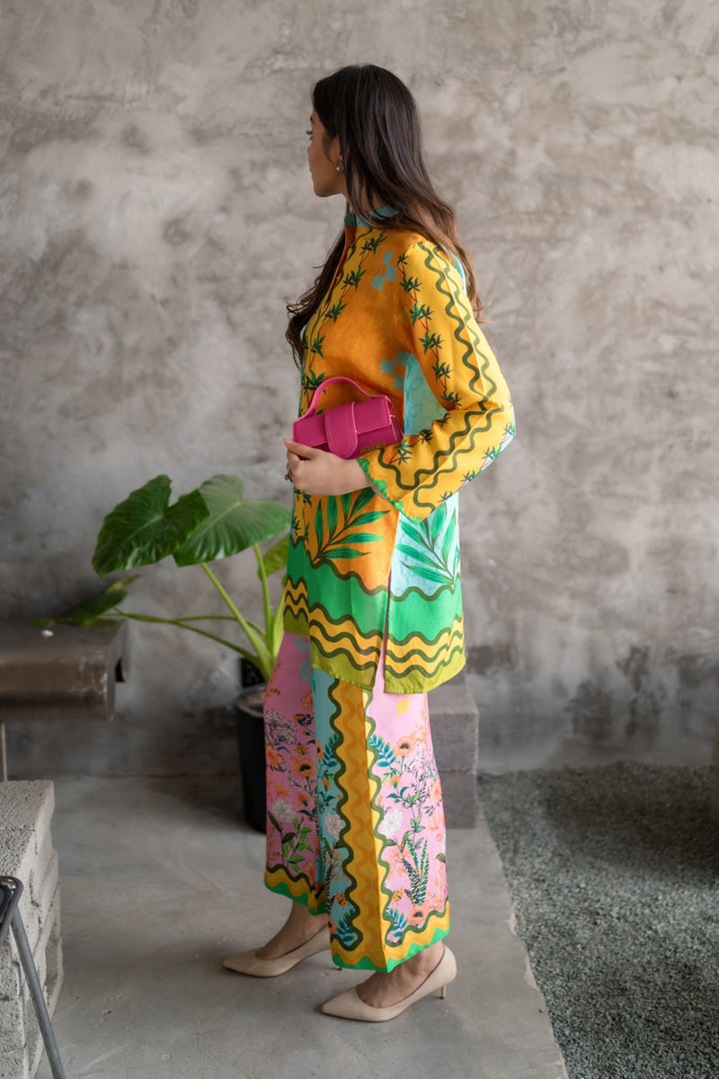 Brighten up your vibe. Yellow zigzag digital print on soft fabric, paired with culottes. A chic co-ord set made for that effortless slay.